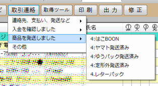 インストール 起動 [ブラウザ] [商品登録] [出 品] [出品中] [取引中] [取引完了] <送料計算> [ソフトウェアの起動] [各種設定] [ツール] [ユーザー情報] [取得/取込] [評価文] [取引連絡] [発送種類] [印刷] [掲示板] [オプション] 取引ナビ(ストアIDではE-mail)での送信するメッセージ文の作成になります。 ![]()